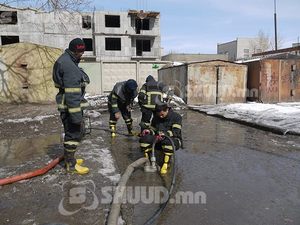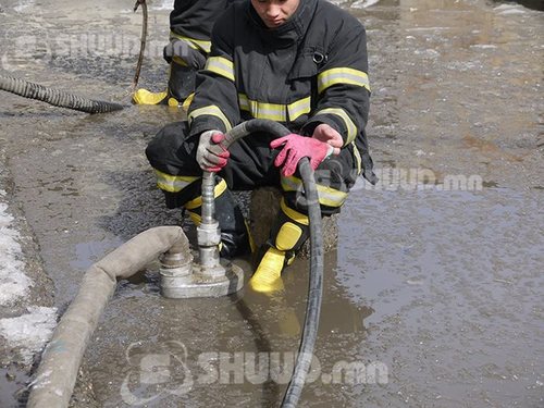 Өглөө өмнөх өдөр орсон бороо, цасны уршгаар СХД-ийн 18 дугаар хорооны хоёр байрны оршин суугчид гарч, орох нөхцөлгүй болсон дуудлага ирсэн юм. “26”-ийн тоотой шар каск, ажлын хувцастай аврагчид байрны гадна талд тогтсон шар усан дунд зогсч, нэг нь ядарсан уу эсвэл өөрт нь эвтэйхэн байсан болохоор тэр үү том чулуун дээр суугаад помпоор усыг соруулна. Тэд ирэлгүй жаахан удсан бол байрны оршин суугчдын гарч, орж чадахгүй асуудал хүндэрч, ойр хавийн цас хайлж шар ус байр руу орж аюул болох байжээ. Аврагчид 2 цаг 30 минутын турш 50 тн ус соруулж, усан дунд зогсов.
