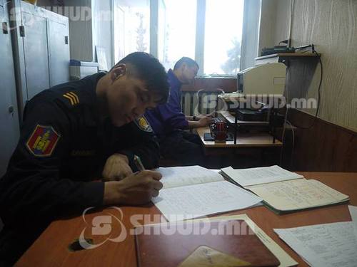 22:10:58 цагт ирсэн дуудлагын түгшүүрийн хонхны дуу чихэнд хоногшоод, хэзээ дахиж ийн дуугарах бол гэж бодсоор. Айдастай. Харин санасныг бодоход тайван шөнө өнгөрлөө. Аврах, гал унтраах 26 дугаар ангийн урдуурх төмөр зам дээгүүр наран сөргөө алхаж буй шуудай үүрсэн хүнийг сүүлээ эргүүлсэн шар халтар нохой даган шогшиж, дөнгөж ирж буй өглөөний амар амгаланг илтгэнэ. Өчигдөр өглөө 08:30 цагт ээлж хүлээж авсан нэгдүгээр салааны алба хаагчид энэ өглөө мөн цагт хоёрдугаар салаатай ээлж халалцлаа. Ээлжээс буусан алба хаагчид гэр рүүгээ яарч, халаа авсан онцгойгийнхон ажилдаа шамдан үлдэв. Бусдын зовлонтой өөрийн юм шиг тэмцдэг, хал үзсэн хөрслөг царай, хат суусан ухаалаг яриатай, аюул гамшиг тохиолдоход аранзаа үүрээд гарахад бэлэн 26 дугаар ангийн албан хаагчдын ажил, амьдрал ийм өнгөтэй аж.