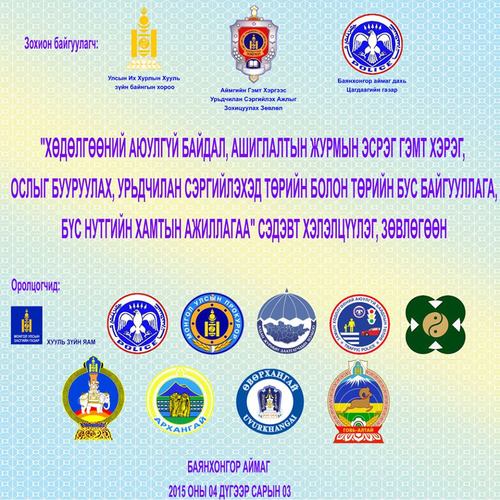 Баянхонгор аймагт “Хөдөлгөөний аюулгүй байдал, ашиглалтын журмын эсрэг гэмт хэрэг, ослыг бууруулах, урьдчилан сэргийлэхэд төрийн болон төрийн бус байгууллага, бүс нутгийн хамтын ажиллагаа” сэдэвт хэлэлцүүлэг, зөвлөгөөн зохион байгуулагдлаа. Энэхүү зөвлөгөөнд УИХ-ын гишүүн, Хууль зүйн байнгын хорооны дарга Д.Ганбат болон байнгын хорооны ажлын албаныхан оролцсон байна.