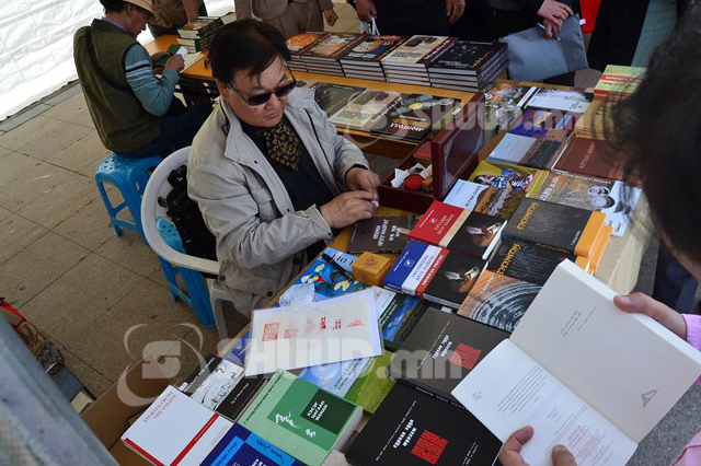 Жил ирэх тусам оролцогч, уншигч, зохиолчдоор хүрээгээ тэлсээр буй “Номын баяр”-т олны танил номын зохиолчид өөрсдөө номоо худалдаалж байна.