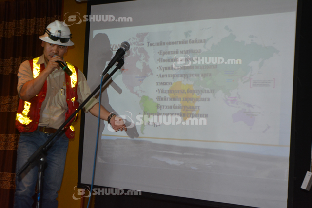 Уулзалтын эхэнд “Эрдэнэс-Таван Толгой” ХК-ийн уурхайн Ерөнхий захирал Н.Нямгэрэл компанийнхаа өнөөгийн нөхцөл байдлын талаар товч танилцуулсан. Тэрбээр хэлэхдээ “Өмнөговь аймгийн Цогтцэций сумын нутаг Улаан нуурын хөндийд байрлах манай компани нь аймгийн төв Даланзадгад хотоос 90 км, Цогтцэций сумын төвөөс өмнө зүгт 16 км, Дорноговь аймгийн төв Сайншанд хотоос 440 км-т байрладаг. Төмөр замын хамгийн ойрын цэг болох Хар Айраг өртөөнөөс 400 км, Гашуунсухайт боомтоос 270 км Монгол-Хятадын хилээс 170 гаруй км-т орших бөгөөд нийт 220 хавтгай дөрвөлжин км талбайг хамардаг.