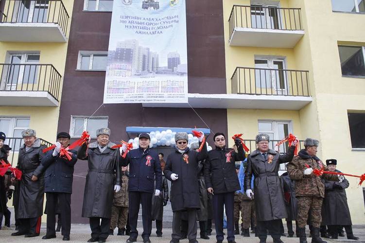 Удаан хугацаанд хүлээлгэсэн батлан хамгаалах салбарын 300 албан хаагчийн орон сууц ашиглалтад орлоо. Өнөөдөр тус салбарын албан хаагчдын төлөөлөл шинэ байрны түлхүүрээ гардан авсан байна. Түлхүүр гардуулах арга хэмжээнд Батлан хамгаалахын сайд Ц.Цолмон, УИХ-ын гишүүн Л.Болд, ЗХЖШ-ын дарга хошууч генерал Д.Даваа, бэлтгэл дэслэгч генерал Ц.Бямбажав болон БХЯ, ЗХЖШ-ын удирдлага оролцож, офицер ахлагч, албан хаагчдад байрных нь түлхүүрийн гардуулан өгчээ.