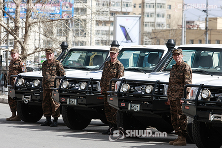 АНУ-ын Засгийн газраас Монголын батлан хамгаалах салбарт 30 гаруй автомашин хүлээлгэн өглөө. Энхийг дэмжих ажиллагааны зориулалттай автомашинуудыг буцалтгүй тусламж болгон өгч буй юм.