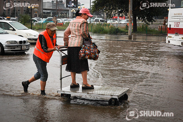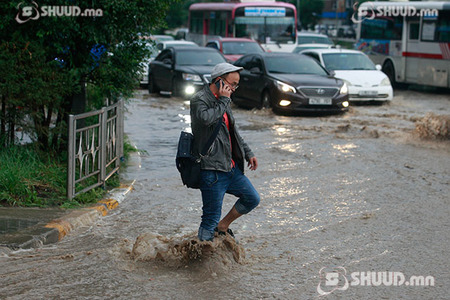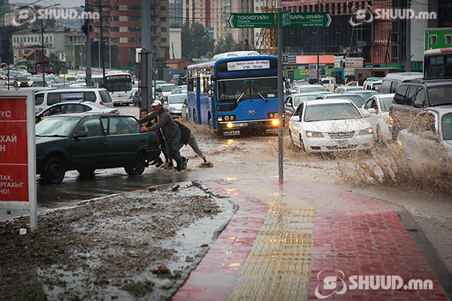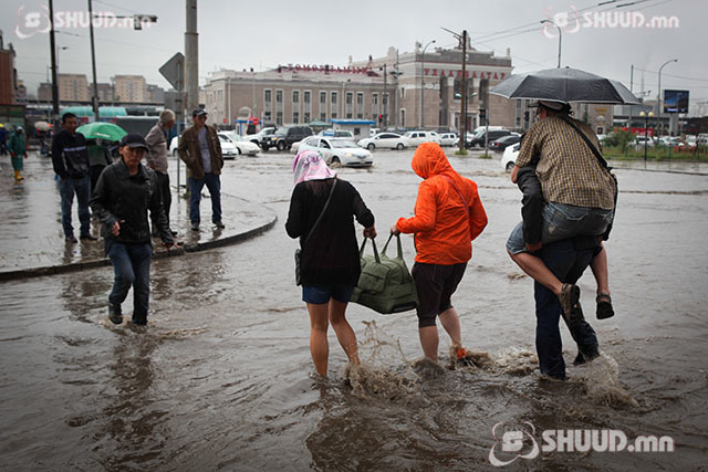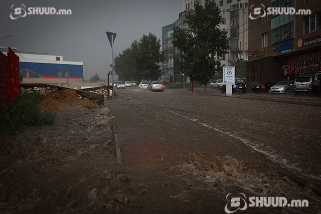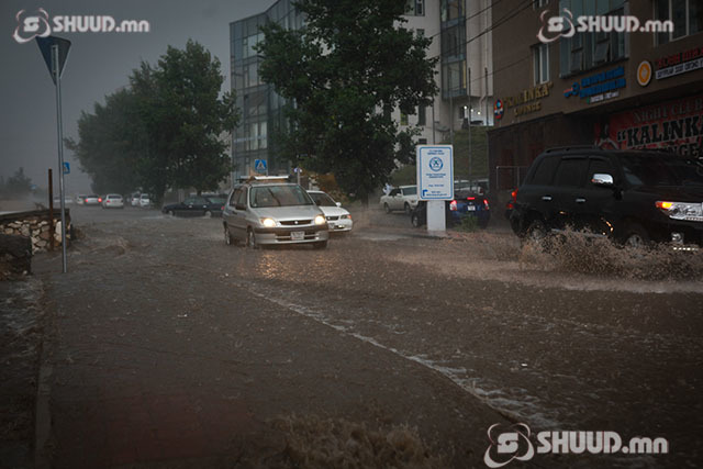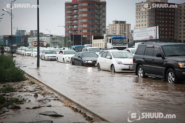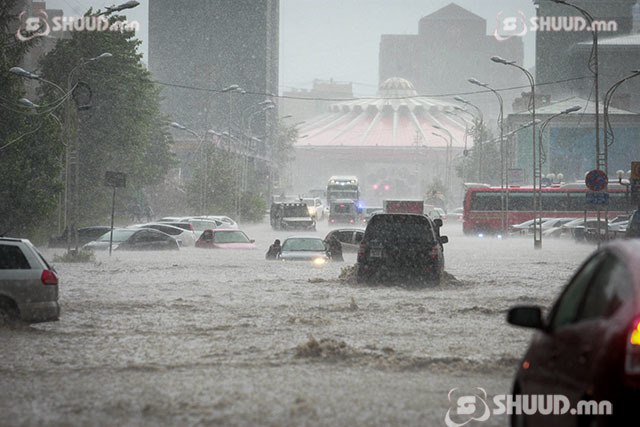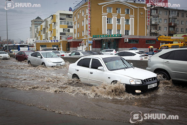 Өчигдөр 19:55-20:30 цаг хүртэл Улаанбаатар хотод орсон түр зуурын хүчтэй аадар борооны улмаас хотын зүүн хэсэг буюу Баянзүрх дүүрэг бүхэлдээ үерт автжээ. Мөн Сүхбаатар, Чингэлтэй, Баянгол дүүргийн хойд хэсэг их хэмжээний усанд автаж, ялангуяа Баянзүрх дүүргийн III хороо Чингис зочид буудлын зүүн талын автозам 300м, Бөхийн өргөөний урд талын хороолол дундах автозам 250м, Нарны гүүрний зүүн талын автозам 150м, “Буян” ХХК-ийy зүүн талын автозамуудад ус ихээр нэмэгдсэний улмаас иргэдийн автомашин усанд суух, хөвөх, орц болон газар доорхи давхарууд усанд автсан байна.