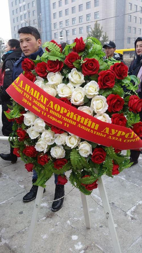 Хүндэтгэлийн арга хэмжээнд Д.Нацагдоржийн нэрэмжит Утга зохиол, нийгмийн ажилтны дээд сургуулийн хамт олон, Монголын зохиолчдын эвлэл болон Улсын драмын эрдмийн театрын хамт олон болон тайз дэлгэцийн үе үеийн нэрт жүжигчид оролцож, цэцэг өргөлөө.