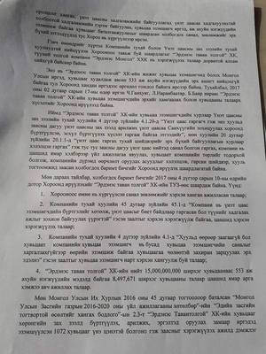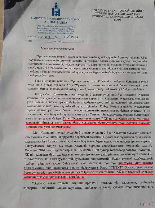 “....Үнэт цаасны хадгаламжийн үйл ажиллагаа эрхлэх байгууллага буюу ҮЦТХТ ХХК-д үнэт цаасаа бүртгүүлээгүй, гэрээ байгуулаагүй тул Эрдэнэс Тавантолгой ХК-ийг хаалттай хувьцаат компани гэж үзэх үндэслэл мөн алга байна” гэсэн байна.