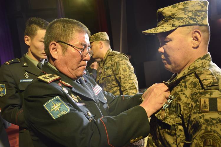 Исламын Бүгд Найрамдах Афганистан Улсад явагдаж буй НҮБ-ын манлаттай “UNAMA” ажиллагаанд НҮБ-ын Хойд болон Зүүн хойд бүсийн цэргийн зөвлөх, Өмнөд Судан Улсад явагдаж буй НҮБ-ын мандаттай “UNMISS” энхийг сахиулах ажиллагаанд агаарын ажиллагаа, штабын офицер, цэргийн холбогч, хөдөлгөөний хяналтын офицер болон Исламын Бүгд Найрамдах Афганистан Улсад явагдаж буй НАТО-гийн цэргийн эвслийн хүчний тэргүүлсэн “Шийдвэртэй дэмжлэг” ажиллагаанд үүрэг гүйцэтгэсэн Монгол Улсын Зэвсэгт хүчний V ээлжийн цэргийн багийн бие бүрэлдэхүүнд Монгол Улсын төрийн одон медаль, Батлан хамгаалах салбарын шагнал гардууллаа.