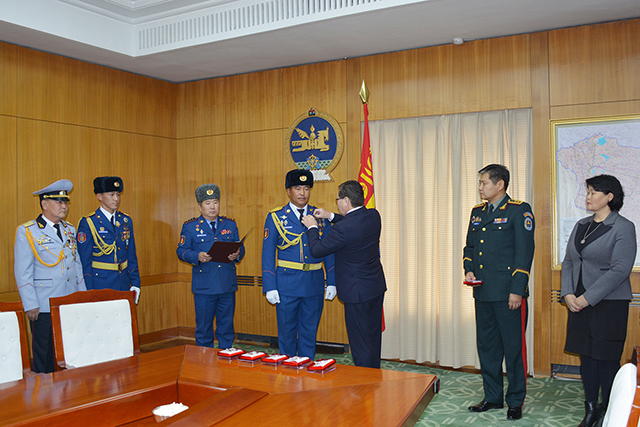 “Цэргийн гавьяаны улаан тугийн одон”-оор Аврах тусгай ангийн Эрэн хайх, аврах салбарын аврах ажиллагааны зааварлагч, ахлах ахлагч Жамсрангийн Баяртогтох, Зэвсэгт хүчний 303 дугаар ангийн орлогч дарга, дэд хурандаа Лувсангийн Баясгалан, “Цэргийн гавьяаны одон”-оор Аврах тусгай ангийн Агаарын ажиллагааны салбарын бүлгийн дарга, шүхрийн зааварлагч, ахмад Ядамбатын Сэргэлэн, Зэвсэгт хүчний 303 дугаар ангийн нисдэг тэрэгний техникч Сосорбарамын Энх-Амгалан нар шагнагдав.