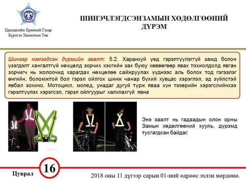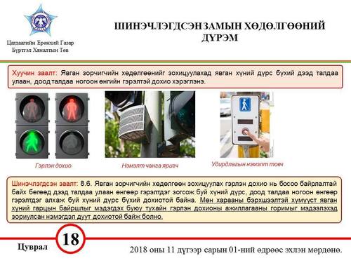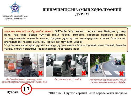 2018.11.01-ний өдрөөс мөрдөж эхлэх Замын хөдөлгөөний шинэчлэгдсэн дүрмээс танилцуулж байна.