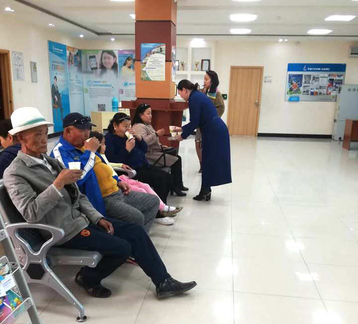 Ахмадын баярыг тохиолдуулан Монгол Улсын бүх аймаг сум, хот сууринд байрлах Төрийн банкны салбар нэгжүүдээс ахмадууд олноор үйлчлүүлдэгнэгжийн теллерүүд үндэсний хувцсаараа жигдрэн, ахмадуудаа халуун цай, тавгийн идээтэй угтан анхан шатны эмчийн үзлэгт хамруулах, хамгийн өндөр настай 5 харилцагчдаа гарын бэлэг өгөх, дугаарлан зогсоохгүй дарааллын урдуур үйлчлэх зэргээр ахмадууддаа хүндэтгэл үзүүллээ.