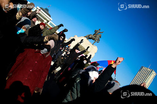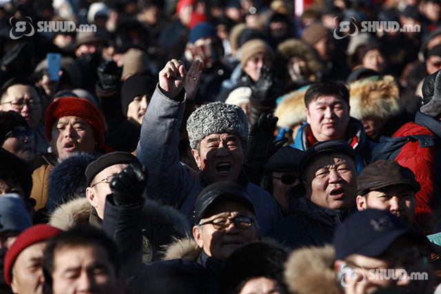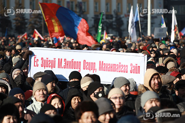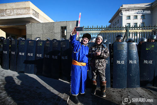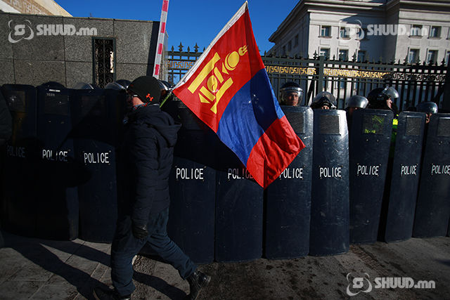 “МАНАН бүлэглэлийн эсрэг бүх ард түмний жагсаал" өнөөдөр /2019.01.10/ Сүхбаатарын талбайд үргэлжилж байна. Цуглааны үеэр эмх замбараагүй байдал үүсхээс сэрэмжилж цагдаагийн алба хаагчид Төрийн ордонг хамгаалалтад авчээ.