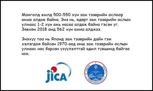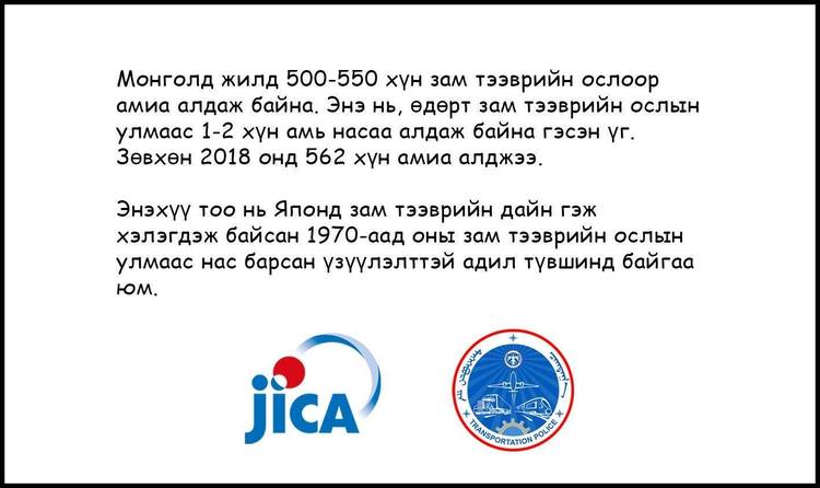 Монгол Улсад жилд дунджаар 500-600 хүн зам тээврийн ослоор амь насаараа хохирч байна.