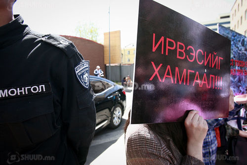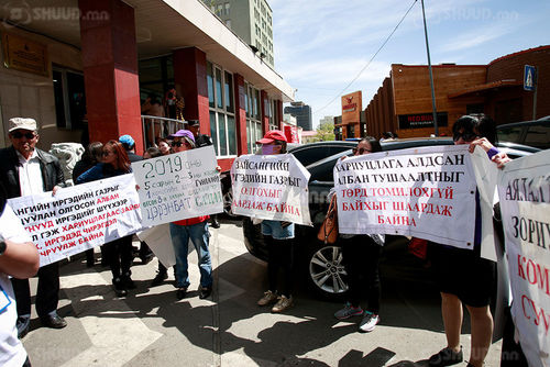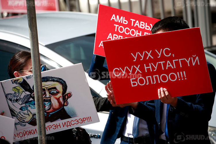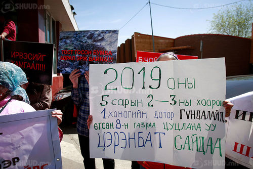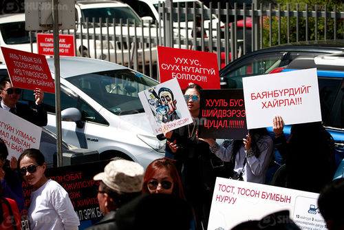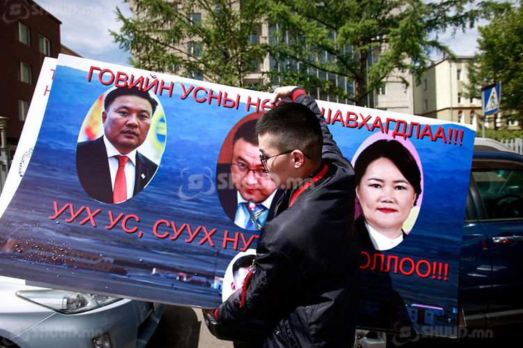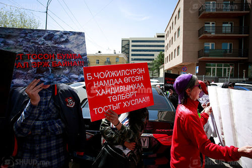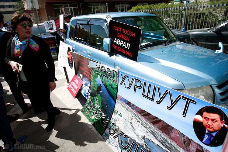 Өмнөговь аймгийн иргэд БОАЖЯ-ны гадаа цуглаан хийлээ. Тэд БОАЖ-ын сайд Н.Цэрэнбатыг огцрохыг шаардаж байна.