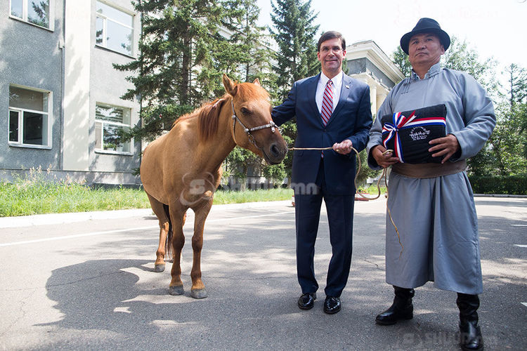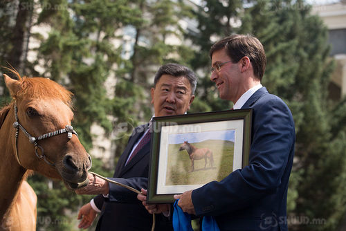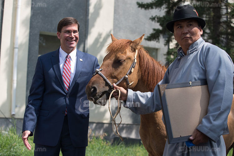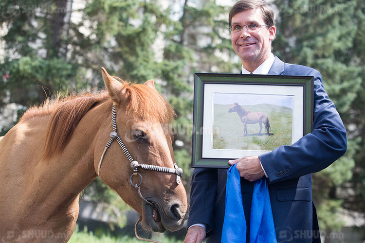 Мөн Пентагоны тэргүүн Марк Эсперт морь бэлэглэж, Батлан хамгаалахын сайд Н.Энхболд морины цулбуурыг гардууллаа. Марк Эспер “ ... Намайг хүндэтгэж морь бэлэглэсэнд би маш их баяртай байна. Энэ морийг манай улсын эрэлхэг генерал Жеорж Маршалын нэрээр нэрлэе. Учир нь тэр хүн Дэлхийн II дайны дараа Хятад улсад цэргийн үйл ажиллагаанд оролцож байхдаа монгол адуу унаж байсан түүхтэй” хэмээн хэллээ.