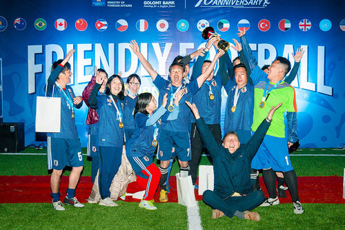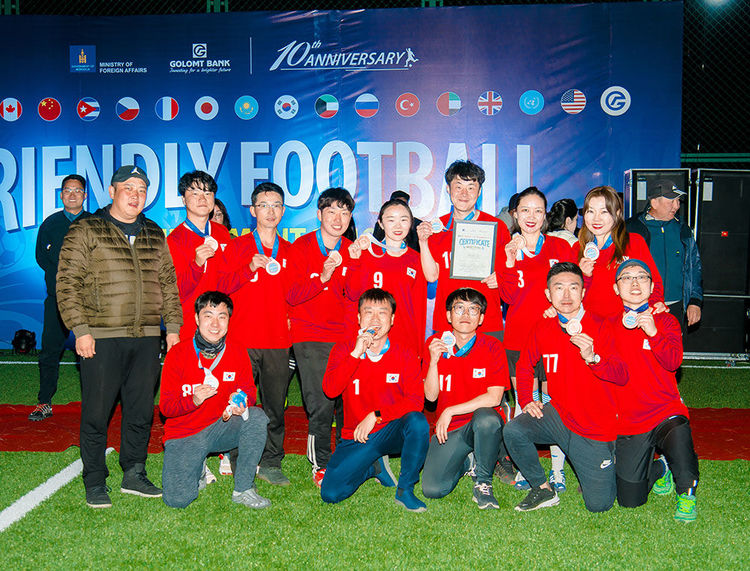 10 жилийн турш тасралтгүй зохион байгуулагдаж ирсэн элчингүүдийн хөлбөмбөгийн аварга шалгаруулах нөхөрсөг тэмцээний 2019 оны “Алтан цом”-ын эздээр 2018 оны ялагч Японы Элчин Сайдын Яамны баг тамирчид дахин тодорсон бол дэд байрт Казакстаны ЭСЯ-ны баг тамирчид, гуравдугаар байранд БНСУ-ын ЭСЯ-ны баг тамирчид шалгарсан юм.