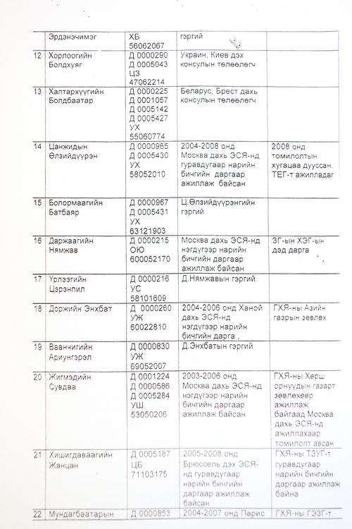 -Энэ хүмүүс төрийн албанд ажиллах үндэслэлгүй. Гадаадад улс оронд хууль бус наймаанд оролцоод Монголдоо аж ахуйн нэгж ажиллуулах хэлбэрээр ажилласан бол мөнгө угаах гэмт хэрэг болно. Тиймээс шалгуулж байгаа. Эрэн сурвалжлагдаж байгаа хүмүүс дотор одоо ЗГХЭГ-т ажиллаж байгаа хүмүүс ч бий. Үүнийг ойрын үед УИХ-аар оруулж хэлэлцүүлнэ.