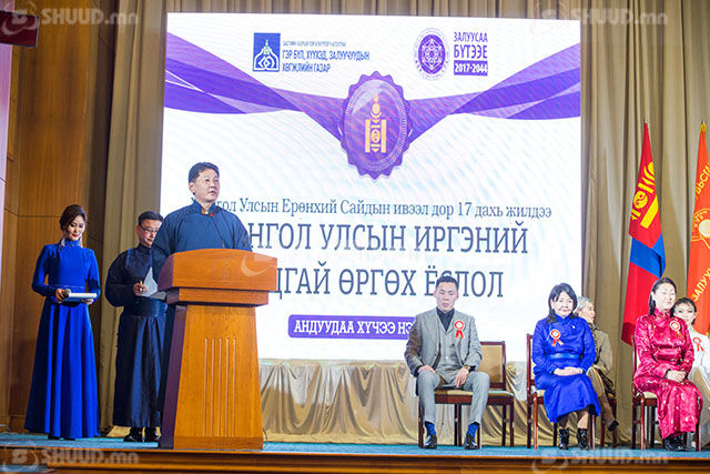 Монгол Улсын Иргэний андгай өргөх ёслолд ирсэн хүндэт зочид, багш нар, сурагчид, эцэг эхчүүд та бүхэнд Монгол Улс Анхдугаар үндсэн хуулиа баталж, Бүгд Найрамдах Улсаас тунхагласны түүхт 95 жилийн ойн мэнд дэвшүүлье.