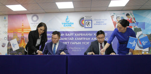 Төрийн банк болон Монголын байт харвааны холбоо “Токио-2020” Олимпын наадамд оролцох эрхээ авсан Монголын байт харвааны шигшээ багийн тамирчин ОУХМ Б.Отгонболд, Пара байт харвааны шигшээ багийн тамирчин Спортын мастер Н.Мөнхбаатар нар бэлтгэл сургуулилтаа тасралтгүй, тууштай хийх боломж нөхцлийг хангах зорилгоор хамтран ажиллах санамж бичиг байгууллаа. Тус санамж бичигт Төрийн банкны бизнес хариуцсан дэд захирал Д.Сугар, Монголын байт харвааны холбооны тэргүүн дэд ерөнхийлөгч С.Эрдэнэболд нар гарын үсэг зурлаа. Энэхүү хамтран ажиллах ёслолын ажиллагаанд Монголын байт харвааны холбооны дасгалжуулагч, тамирчид болон Төрийн банкны төлөөлөл оролцсон бөгөөд Олимпын эрх авсан тамирчиддаа баяр хүргэж амжилт хүслээ.