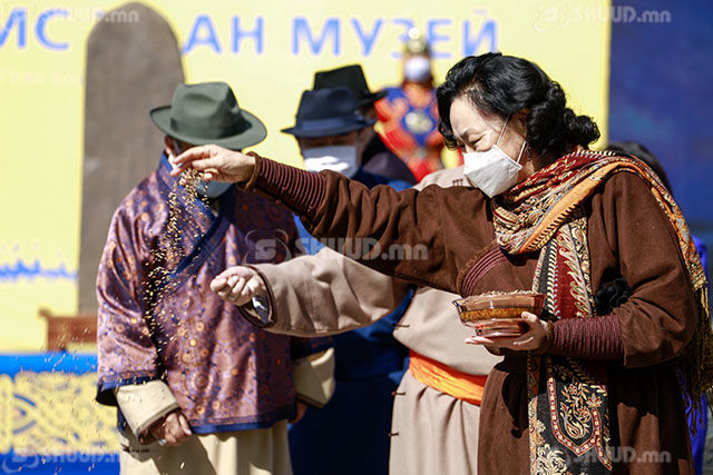 Уг ёслолд төр, нийгэм, урлаг соёлын нэрт зүтгэлтнүүд, эрдэмтэн мэргэдийн төлөөлөл оролцлоо. “Чингис хаан” музейн бүтээн байгуулалтыг эхлүүлэх, төв сууринаа оршоох шүншигт Монгол төрийн тахилгат арван хайрхан болон тахилга шүтээнт уул, нуруудын хөрс шороон эрдсийн дээж, таван өнгийн торго, таван тансаг идээ, таван тансаг идээний нэгэн болох нуур, гол, мөрөн рашаан, усны дээж, таван үрийн дээж, таван үнэртний дээж, таван эмийн дээж, есөн эрдэнэс тэргүүтнийг Монгол орны 4 зүг, найман зовхис 21 аймаг, нийслэлээс бүрдүүлэн өргөсөн байна. “Чингис хаан” музей нь Монголын анхны тулгар төр Хүннүгийн эзэнт улсын Модун Шаньюйгаас эхлэн хүн төрөлхтний түүхэнд агуу их үйлийг бүтээсэн Их Монгол улсаас ХХ зууны шинэ Монгол улс хүртэлх хаад, язгууртны бүрэн түүхийг багтаах юм.