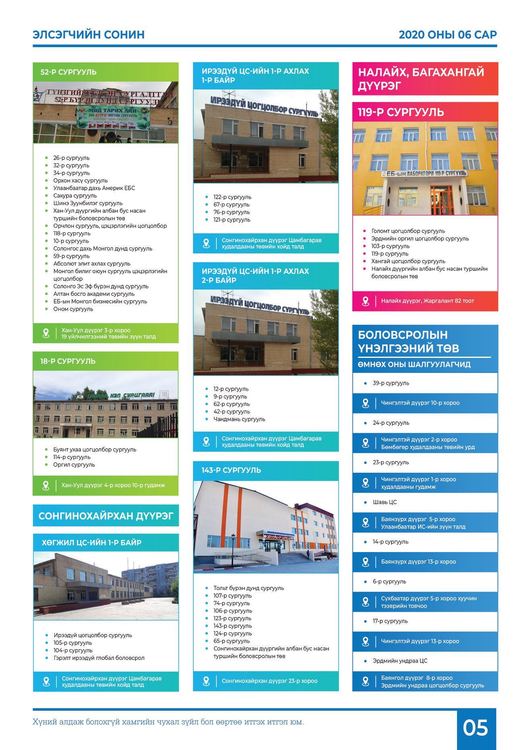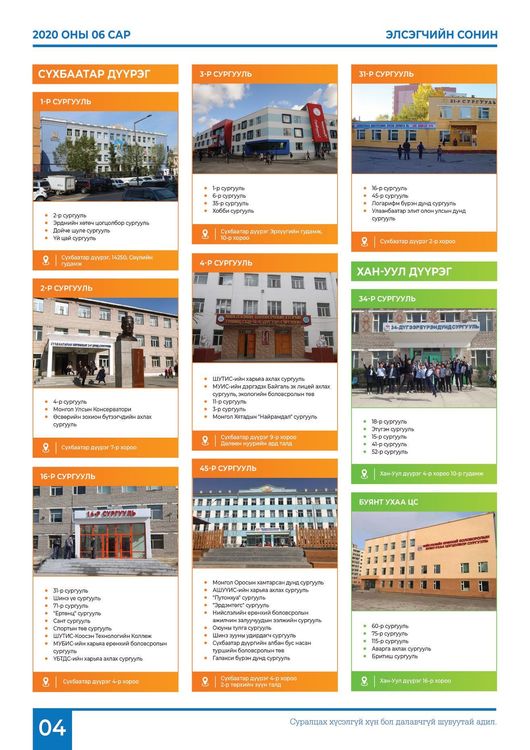 ЭЕШ-т зохион байгуулах Улаанбаатар хот дахь төвүүд: