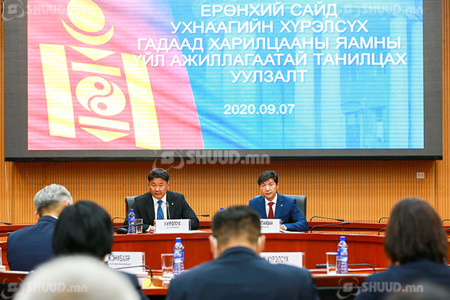 Монгол Улсын Ерөнхий сайд У.Хүрэлсүх 9 дүгээр сарын 7-ны өдөр Гадаад харилцааны яаманд ажиллаж, яамны хамт олонтой уулзан Засгийн газрын тавьж буй зорилт, төрийн албан хаагчид, түүний дотор төрийн тусгай албанд ажиллаж буй дипломат албаны ажилтнуудын өмнө тавигдаж буй шаардлагын талаар ярьж, албан хаагчид ажлаа ёс төртэй, хариуцлагатай гүйцэтгэх талаар үүрэг даалгавар өгөв.