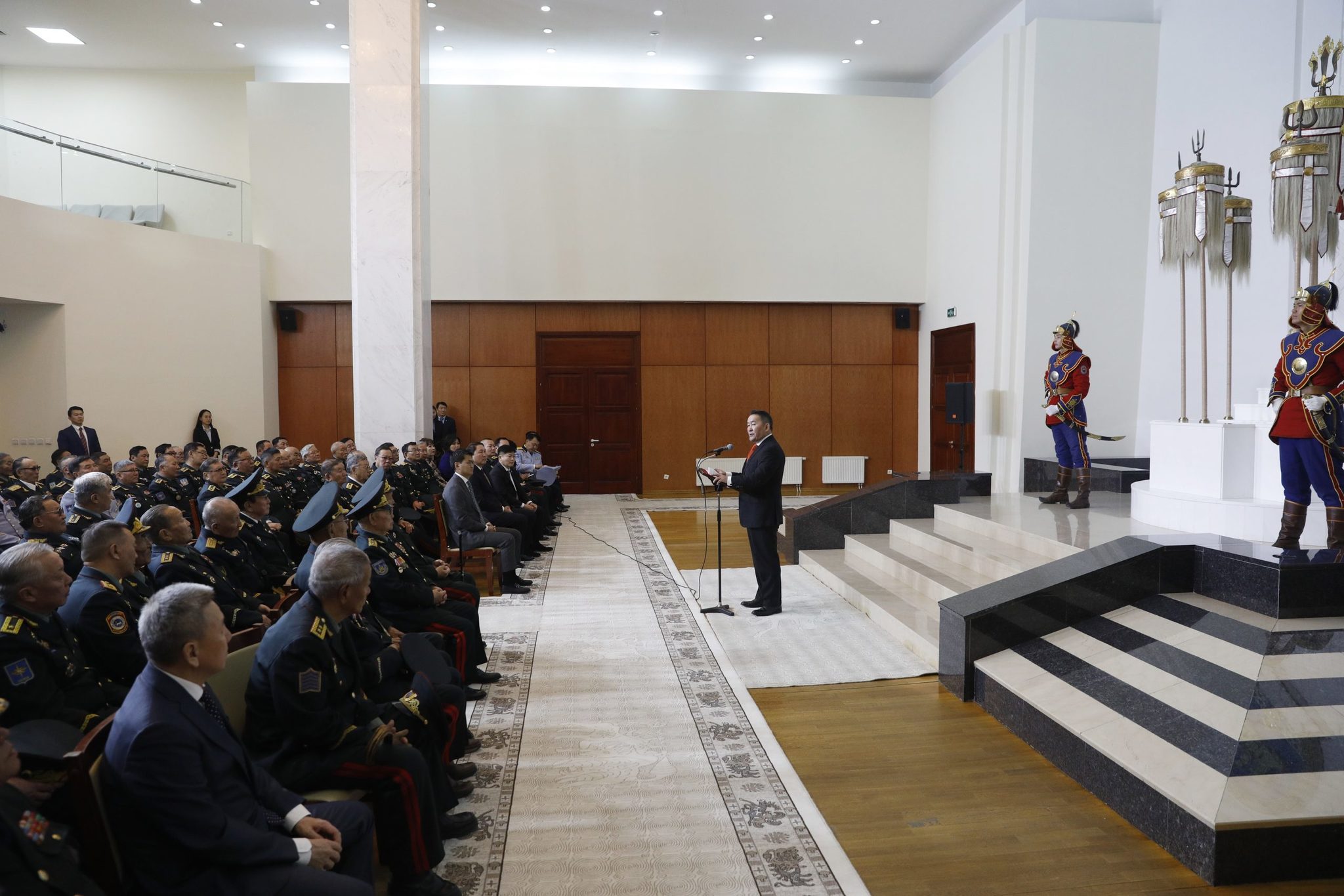 Монгол Улсын тусгаар тогтнол, үндэсний аюулгүй байдал, ард түмний амар амгалан амьдралын баталгаа болсон Зэвсэгт хүчин, төрийн цэргийн болон хууль сахиулах байгууллагуудын өнөөгийн өөрчлөлт, шинэчлэлт, дэлхий дахины энхийн үйл хэрэг, энх цагийн их бүтээн байгуулалт, улс орны хөгжил дэвшилд албан үүргээ гүйцэтгэж буй болон бэлтгэл, чөлөөнд байгаа эрхэм генералууд Та бүхний оруулсан хувь нэмэр, гүйцэтгэсэн үүрэг үлэмж их билээ.