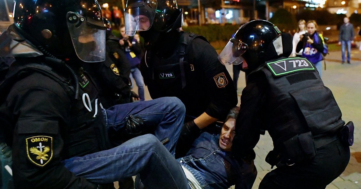 Минск хотын Тусгаар тогтнолын өргөн чөлөөний хэд хэдэн газарт хүчнийхэн жагсагчдыг саатуулан баривчилж, мөн эсэргүүцлийг тараах үүднээс гэрэлт дуут гранат зэрэг тусгай хэрэгсэл ашиглажээ.