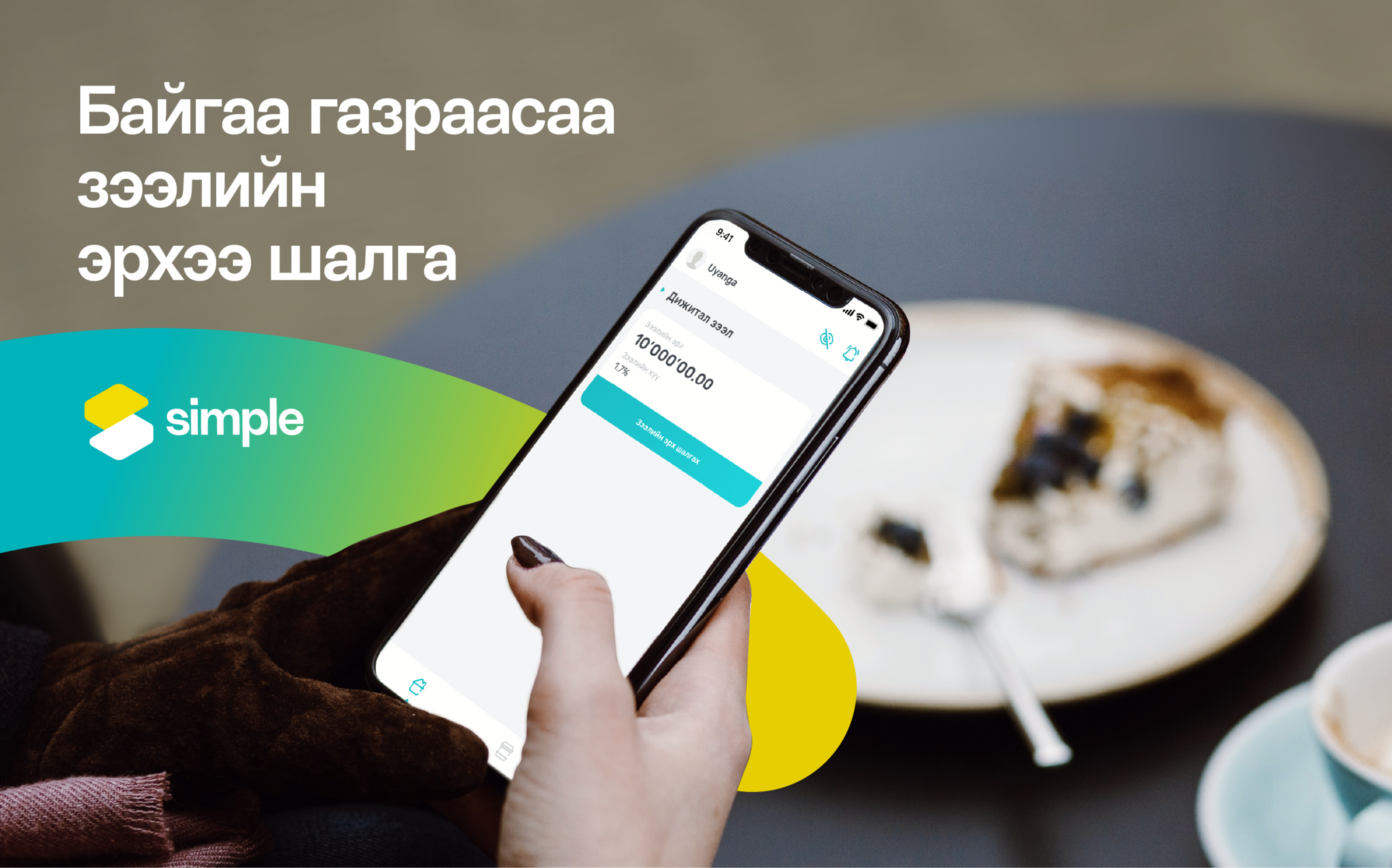 Та яг одоо энэ нийтлэлийг уншиж байхдаа л байгаа газраасаа ухаалаг гар утсандаа “Simple” аппликэйшнээ татан зээлийн дээд хэмжээгээ хэдхэн секундийн дотор урьдчилан мэдэх боломжтой. Харин хуулийн дагуу санхүүгийн үйлчилгээ авахын тулд Харилцагчийн үйлчилгээний төвд гэрээ байгуулахаар эхний бөгөөд ганцхан удаа очих шаардлагатай. Гэрээ байгуулсны дараа бүх үйлчилгээг аппликэйшнээр дамжуулан авах боломжтой. Өөрөөр хэлбэл зээл авахын тулд урт дараалалд зогсох шаардлагагүй, гэрээ байгуулсны дараа таны гар утас манай салбар болно гэсэн үг.