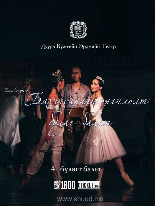 УДБЭТ-аас өнөөдөр Б.Асафьев "БАХЧИСАРАЙН ОРГИЛОЛТ БУЛАГ" балетын лайвыг фэйсбүүк хуудсаараа хүргэхээр болжээ.