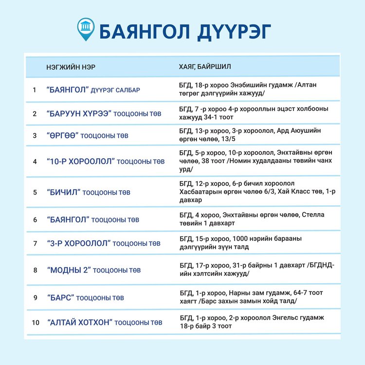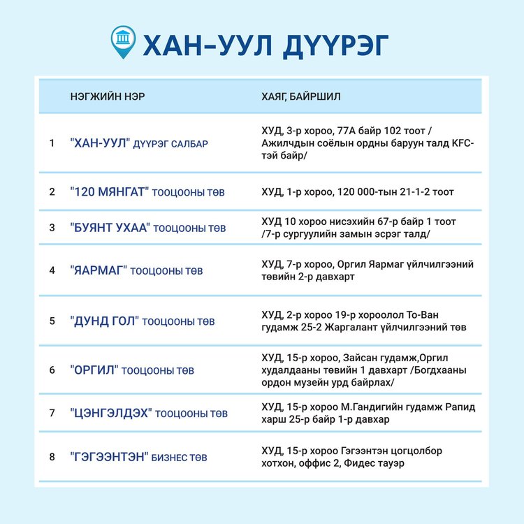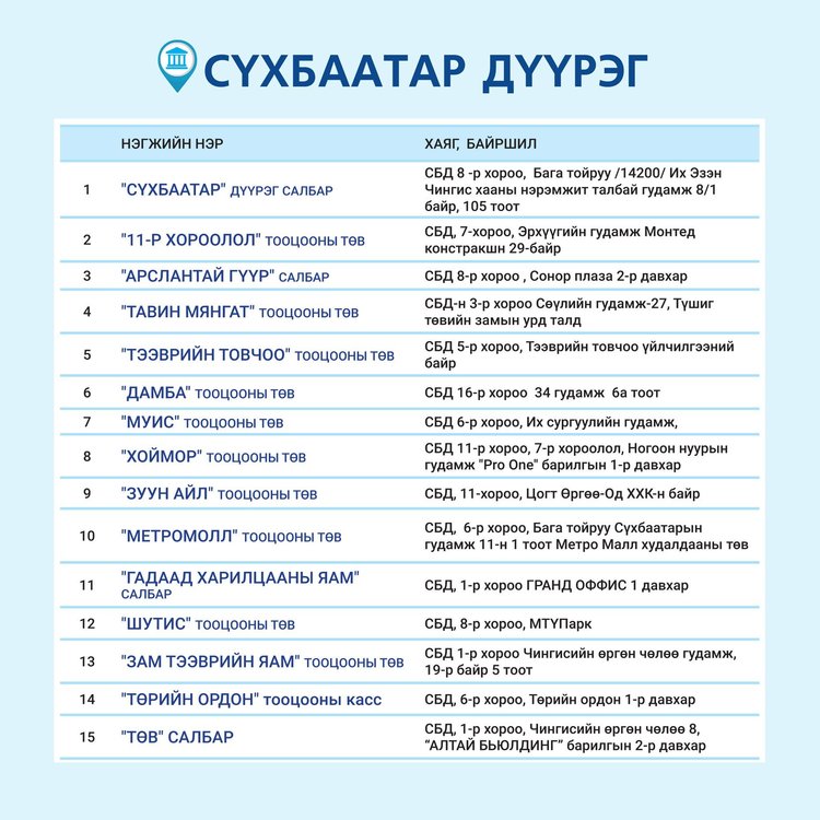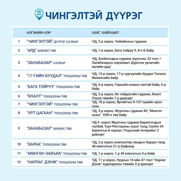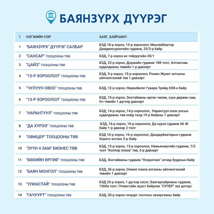 Төрийн банкны салбаруудын ажиллах ХУВААРЬ