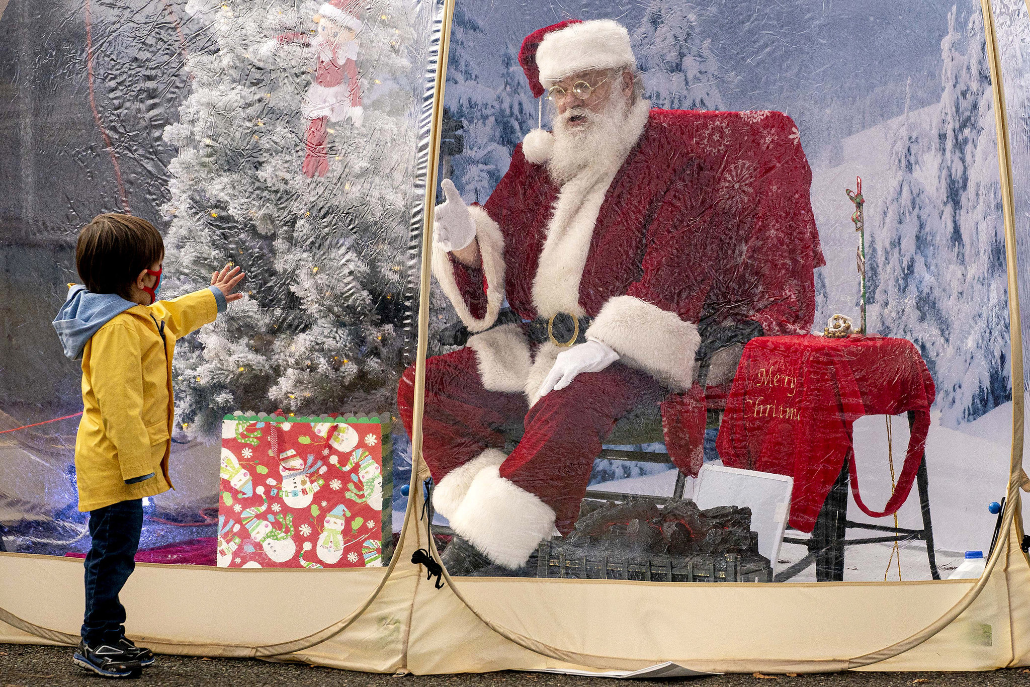 Хэдийгээр дэлхий даяар хөл хорио тогтоож, амаргүй нөхцөл байдал үргэлжилж байгаа ч дэлхийн олон оронд хүүхдүүдийг баярлуулах өвлийн шидтэнүүд төрөл бүрийн аргаар ажлаа хийж эхэлжээ. Ихэнх нь цахимаар хүүхдүүдтэй уулзаж байгаа бол АНУ-ын Вашингтон мужийн Сиэтл хотод Санта-Клаус бөмбөлгөн дотроос хүүхдүүдэд баяр хүргэж байна. Өмнө нь энэ төрлийн аргыг Оклахомад ашиглаж байлаа. Энэ удаад Сиэтл хотын нэгэн гудамжинд тунгалаг бөмбөлгийг байршуулжээ.