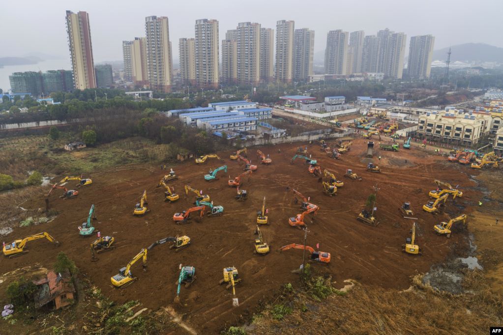 Хятадын Хубэй мужийн Ухань хотод коронавирусийн халдвар авсан өвчтөнүүдэд зориулсан эмнэлгийн барилгын талбай дээрх экскаваторууд. 2020.01.24.