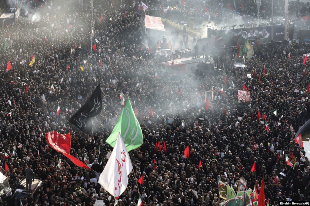 Иракт Америкийн нисгэгчгүй нисэх төхөөрөмжийн цохилтын улмаас амиа алдсан Ираны генерал Касем Сулеймани болон түүний нөхөдтэй салах ёс хийх ёслолын ажиллагаа. 2020.01.06