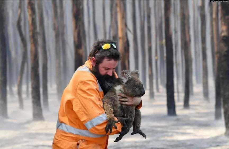 Австралийн шатаж буй ойгоос коала баавгай аварсан эр. 2020.01.07