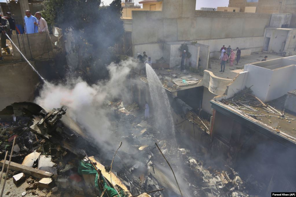 Аврагчид Пакистаны Карачи хотод болсон онгоцны сүйрлээс үүдэлтэй галыг унтрааж байна. Онгоцны улмаас 98 хүн амиа алдсан юм. 2020.05.22.
