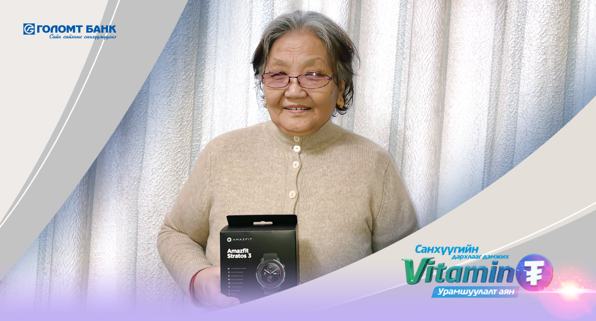 Голомт банкнаас иргэдийг хуримтлалтай болгох, санхүүгийн дархлааг нь дэмжих зорилгоор хэрэгжүүлж буй “Витамин ₮” урамшХШуулалт хөтөлбөрийн хамгийн сүүлийн live тохирол Голомт банкны албан ёсны Фэйсбүүк хуудас болон Ikon News Фэйсбүүк хуудсаар явагдаж, нийт 28 азтан ухаалаг утас, ухаалаг цаг болон эрхийн бичгийн эзэд боллоо. Азтанаар тодорч, ухаалаг цагийн эзэн болсон Г.Лхамхүүтэй бид цөөн хором утсаар ярилцаж сэтгэгдлийг нь сонссоноо сийрүүлэн хүргэж байна. Тэрээр Голомт банкны Энгийн хугацаатай хадгаламждаа орлого нэмснээр сугалаатай болж, ухаалаг цагийн азтанаар тодорчээ.