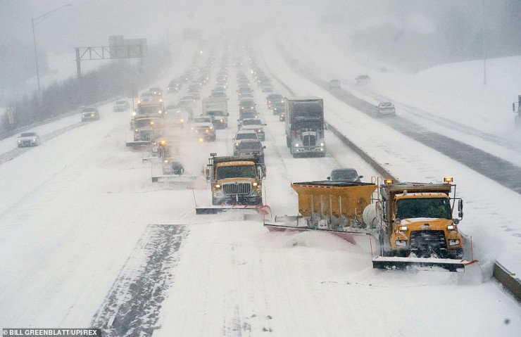 Цаг агаарын онц үзэгдэл ирэх амралтын өдөр хүртэл үргэлжилнэ гэж цаг уурчид анхааруулсан байна. Хоёрдугаар сарын 16-ны мягмар гарагийн байдлаар АНУ-ын нутаг дэвсгэрийн 73 хувь нь цасаар бүрхэгджээ.