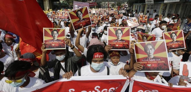 Эсэргүүцэгчид Мьянмарын Ерөнхийлөгч болон удирдагч Аун Сан Су Жи нарыг нэн даруй суллаж, цэргийнхнийг засгийн эрх мэдлээс холдохыг шаардаж байгаа юм.