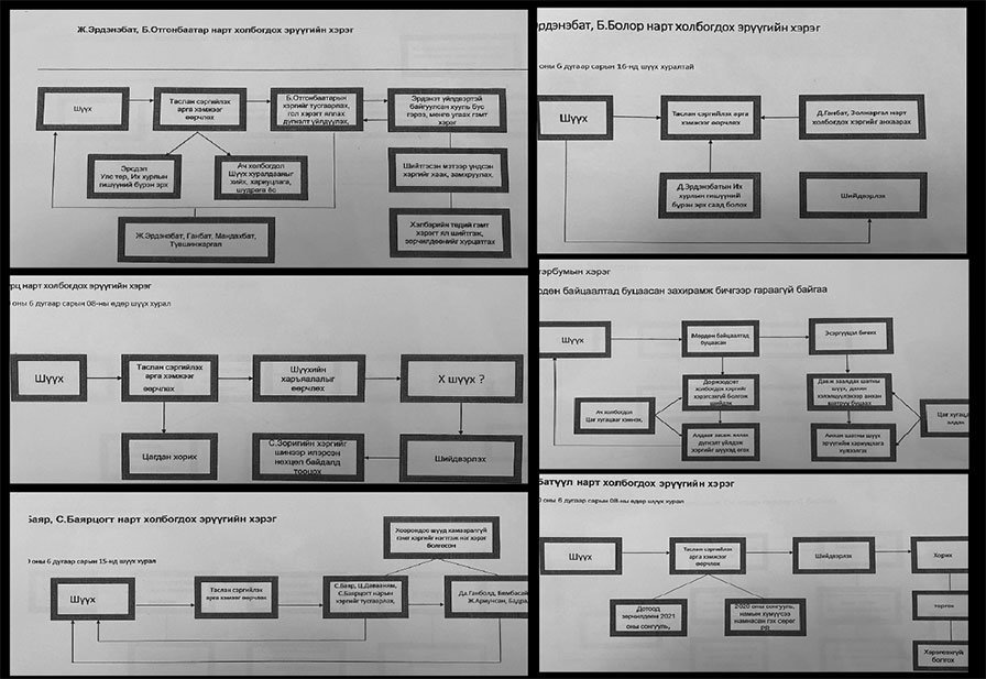 w“Шүүх хурал 2020 оны зургадугаар сарын 15, шүүх нь таслан сэргийлэх арга хэмжээг өөрчилж, дараа нь С.Баяр, Ч.Давааням, С.Баярцогт нарын хэргийг тусгаарлах, Да.Ганболд, Б.Бямбасайхан, Ж.Ариунсан, хоорондоо шууд хамааралгүй гэмт хэргийг нэгтгэж нэг хэрэг болгосон гэх” гэжээ.