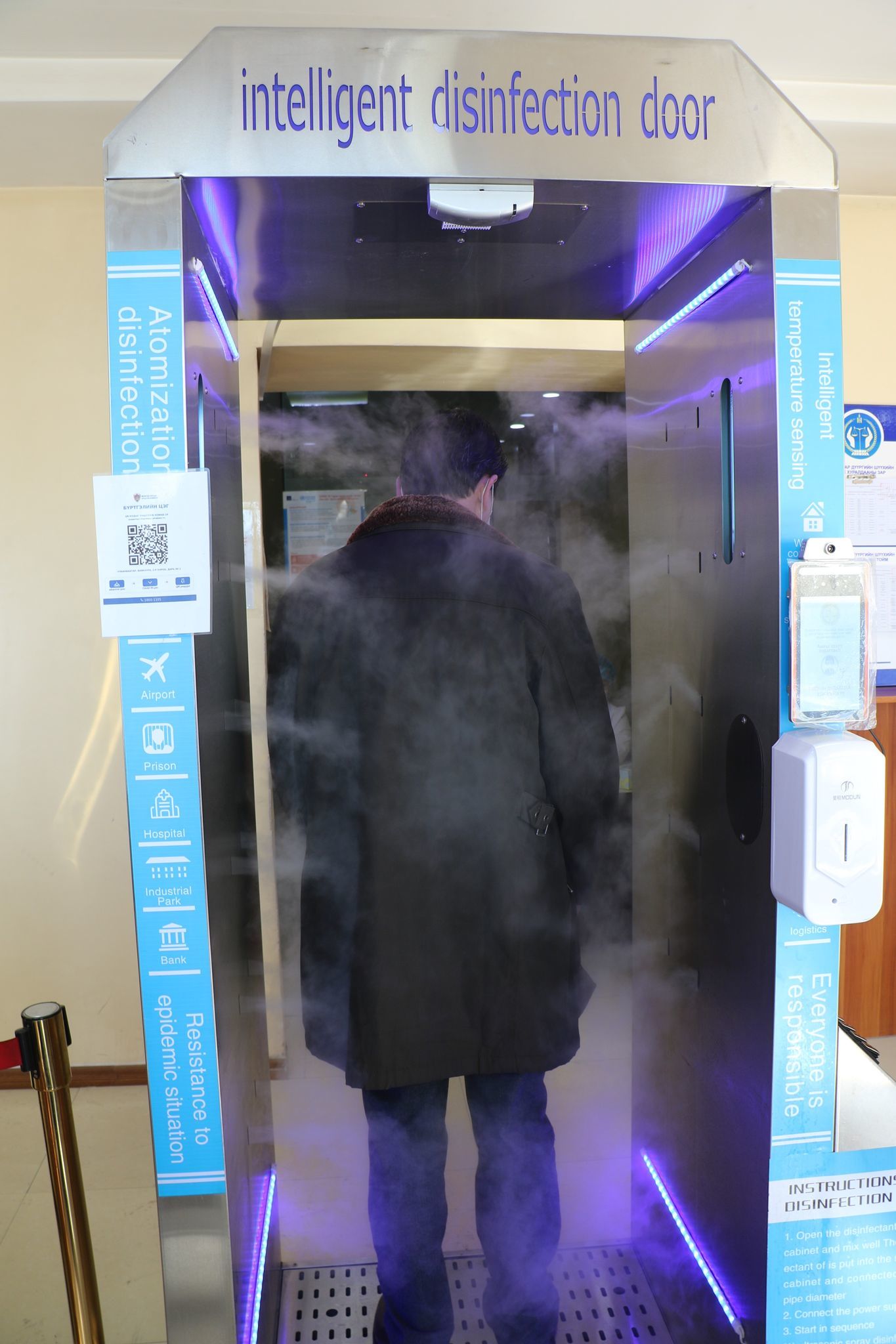 Энэ хаалга нь ариутгалын тусгай шингэн бодисыг мананцар болгон цацан озоны хий болон хэт ягаан туяагаар 360 градус ариутгал хийх бөгөөд гар ариутгагч, халуун хэмжих сүүлийн үеийн технологитой. Ингэснээр тус шүүхийн байранд нэвтэрч буй хүн бүрийг эрсдэлээс хамгаалж, халдвараас урьдчилан сэргийлэх төдийгүй коронавируст халдварын эрсдэл өндөр байгаа энэ цаг үед албан хаагчдын ажил үүргийг хөнгөвчилж байгаа аж.