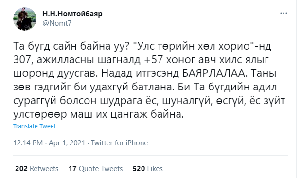 Н.Номтойбаяр: Хилс ялыг шоронд дуусгалаа