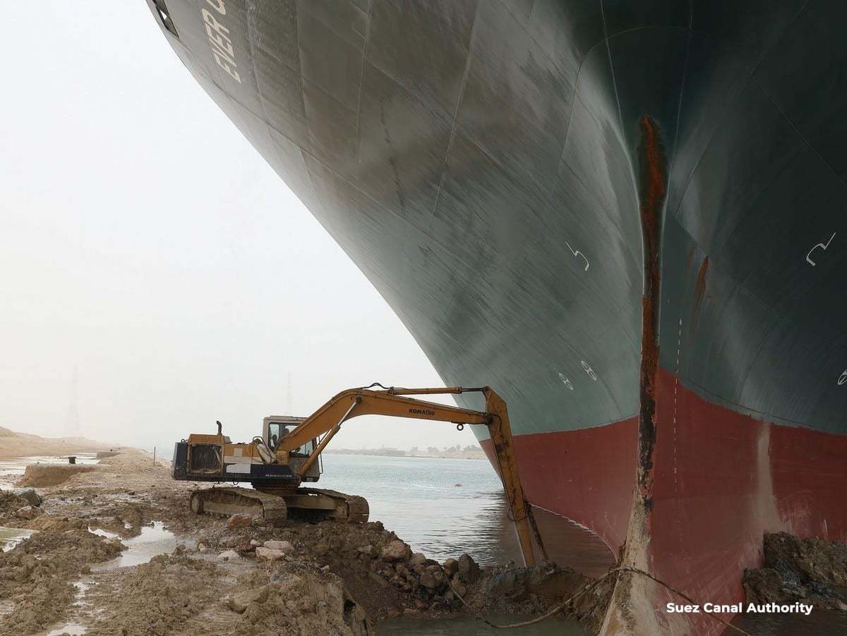 Эвер Гивен чингэлэг тээвэрлэгч Суэцийн сувагт долоо хоногийн турш түгжрэл үүсгэж, үеэр онгоцыг холдуулах ажил тасралтгүй явагдаж байлаа. Энэ хугацаанд түгжрэлд усан онгоцнууд сул зогсож, суваг хаагдсанаас үүдэн өдөр бүр 9.6 тэрбум ам.долларын бараа бүтээгдэхүүн саатаж байгаа гэж холбогдох албаныхан мэдээлж байв.