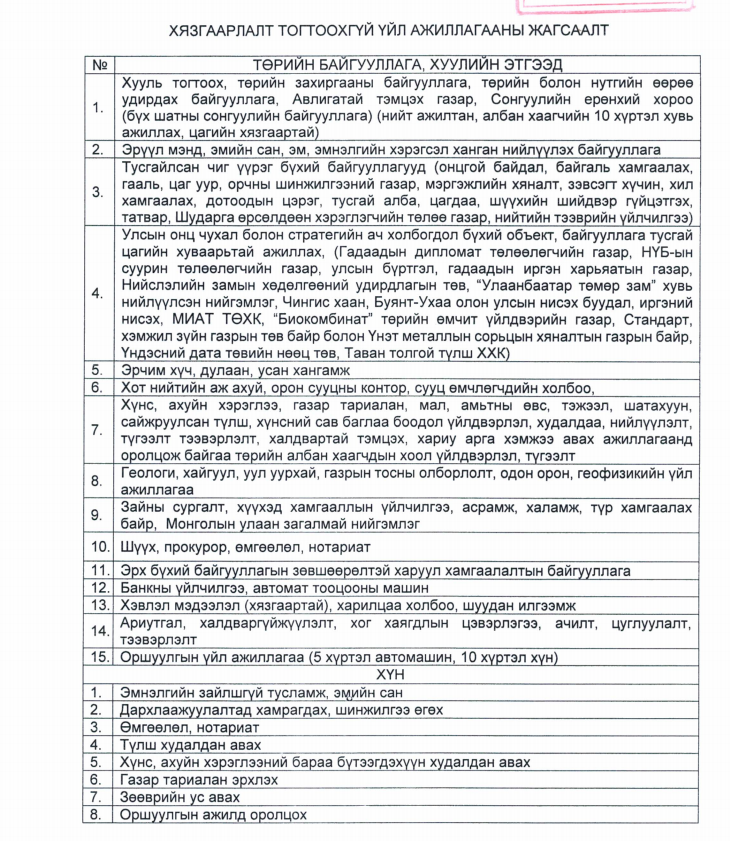ХЯЗГААРЛАЛТ ТОГТООХГҮЙ ҮЙЛ АЖИЛЛАГААНЫ ЖАГСААЛТ