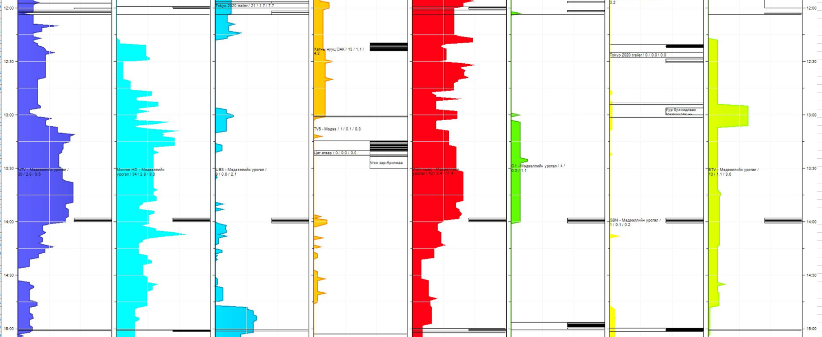 - Ижил агуулгыг нэгэн зэрэг олон сувгаар цацах нь үзэгчдийн сонголтыг хяхан боогдуулсан, зүйрлэвэл картелийн шинж чанар агуулж байна. Дээхнэ үед “Алтан шонхор“ хэмээх ТВ-үүдийн наадмыг нэгэн цагт явуулж шүүмжлэлд өртөж байсан. Ийм алхам хийх үр дүн, хүлээлт нь юу байсан юм бол? Хувийн телевизийн хүсдэг, зорьдог үзүүлэлт бол үзэгчийн үнэлгээ, хувь, хүртээмж, (Rtg, Share, AvRch) гэх мэт байдаг, үүгээр л өрсөлддөг. Өрсөлдөх чадвартай болох хамгийн дөт зам бол цэвэр өрсөлдөөн.