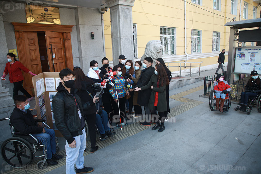 Хөдөлмөр нийгмийн хамгааллын яамны гадаа хөгжлийн бэрхшээлтэй иргэдийн төлөөлөл цуглаад байна. Тэд Хөгжлийн бэрхшээлтэй хүний хөгжлийн ерөнхий газрын удирдлагуудын хууль бус үйлдлийг илчилсэн иргэн М.Чулуун-Эрдэнийг дэмжиж, эрх ашгаа хамгаалахаар иржээ. Иргэн М.Чулуун-Эрдэнэ ХНХЯ-ны гадаа гурав дахь өдрөө суулт зарлаж байна. Тэрбээр хөгжлийн бэрхшээлтэй 103 иргэний нэрээр хууль бус үйл ажиллагаа явуулж, төрийн мөнгийг шамшигдуулсан албан тушаалтнуудад хариуцлага тооцохыг шаардаж буй юм.