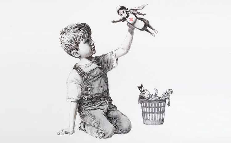 Энд дуулгахад, Бэнкси гэх нууц нэрээр алдаршсан зураач одоогоос жилийн өмнө буюу 2020 оны тавдугаар сарын зургааны өдөр ээлжит бүтээлээ Английн Саутгемптон хотын эмнэлгийн ханан дээр байрлуулж байв. Нэг квадрат метр талбайтай хар цагаан өнгийн энэ зургийг эмнэлгийн удирдлагуудтай зөвшилцсөний дараа сэхээн амьдруулах тасгийн ойролцоох ханан дээр өлгөсөн байна.