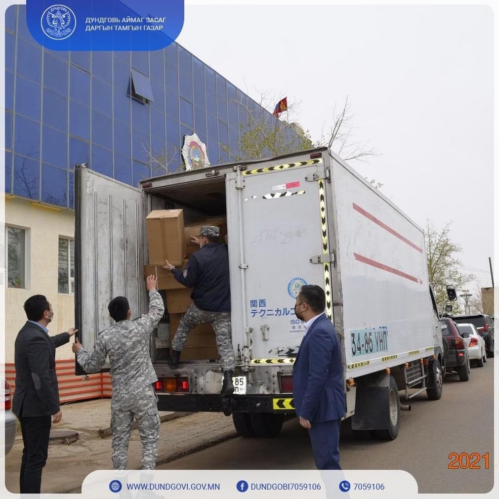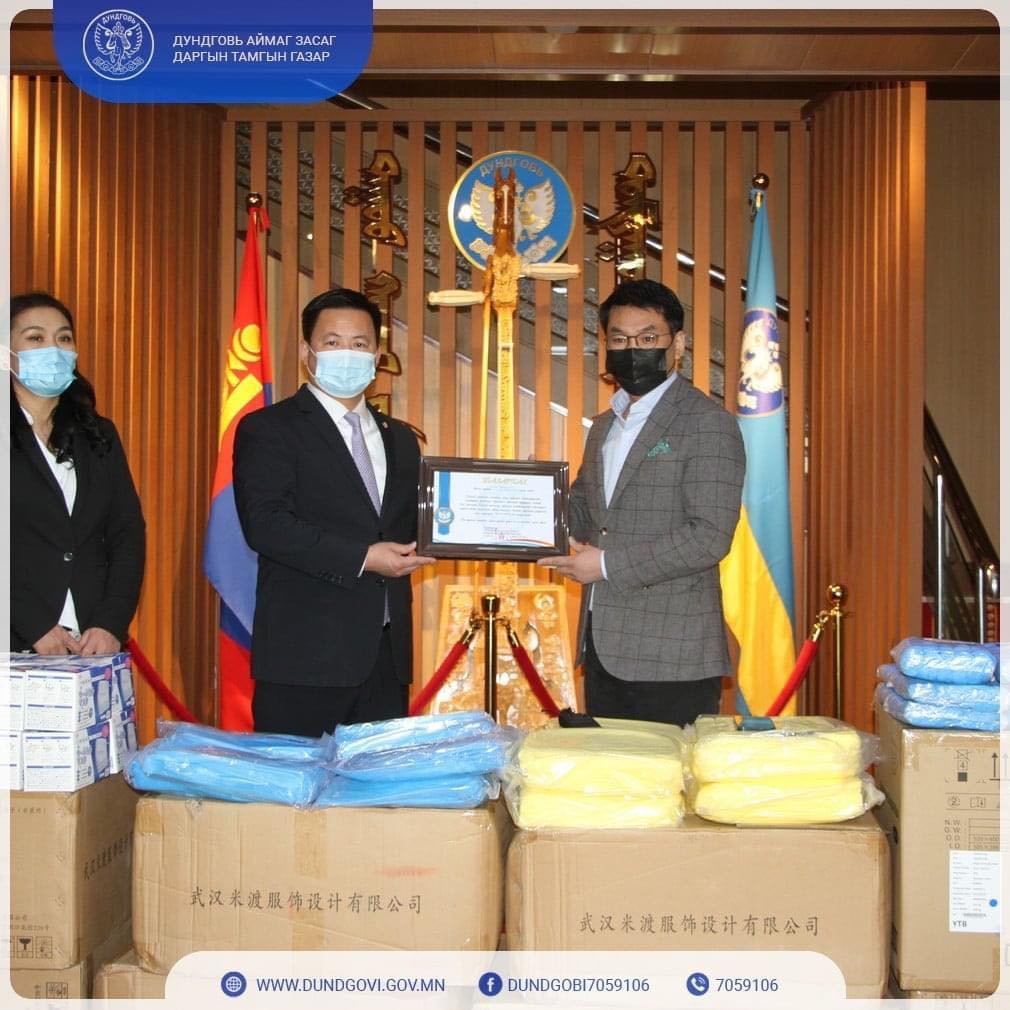 Монгол Улсын Ерөнхийлөгч Х.Баттулга Коронавирус (Ковид-19)-ийн цар тахлаас урьдчилан сэргийлэх, тэмцэх, эрсдлийг даван туулахад зориулж 8 нэр төрлийн 144400 ширхэг эмнэлгийн 1 удаагийн хамгаалах хэрэгслийн тусламж үзүүлснийг Ерөнхийлөгчийн Тамгын газрын дарга Ө.Шижир Дундговь аймгийн Онцгой комисст өнөөдөр гардуулан өглөө.