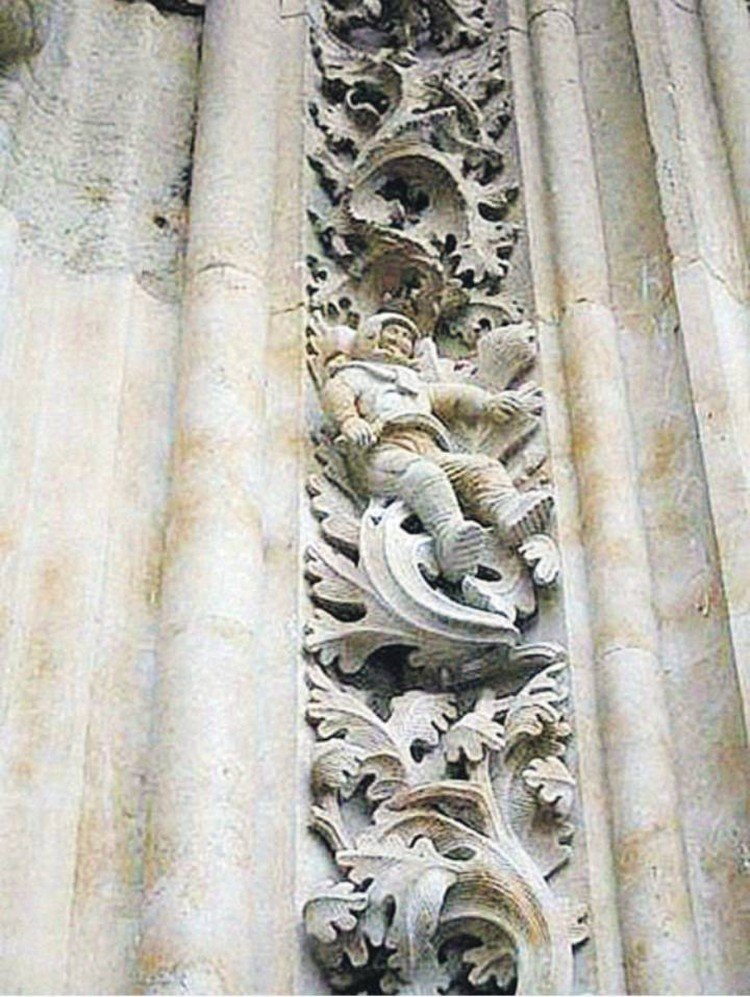 Саламанка дахь Гэгээн Иеронимийн сүмийн хананд байх сансрын нисэгч