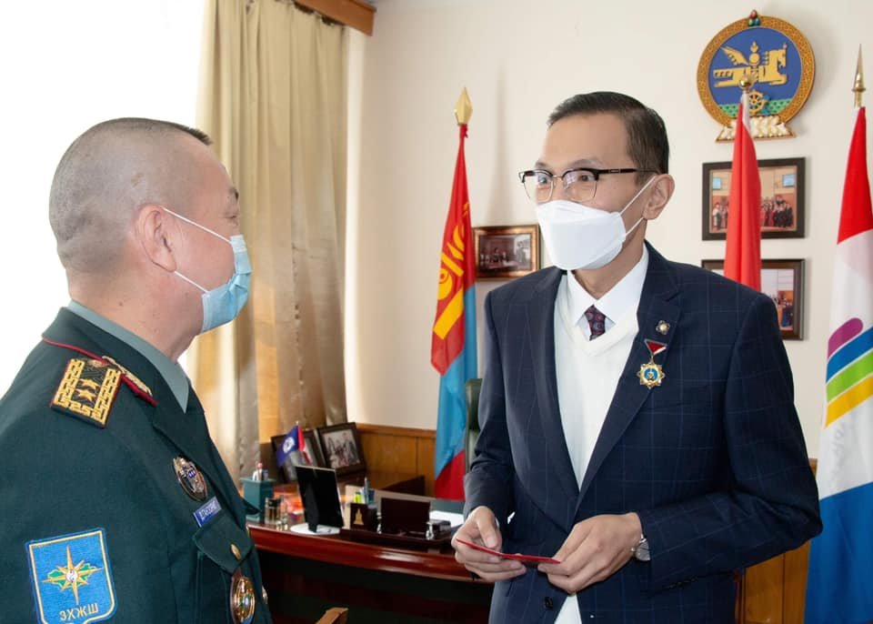 Энэ үеэр Ерөнхийлөгчийн зарлигаар Зэвсэгт хүчний 100 жилийн ойн медалиар шагнагдаж Зэвсэгт хүчний жанжин штабын дарга, хошууч генерал Д.Ганзориг өрөөнд минь саатсан ерөөлтэй өдөр тохиолоо.