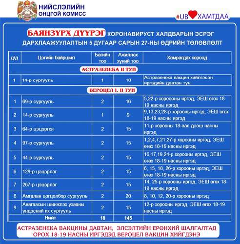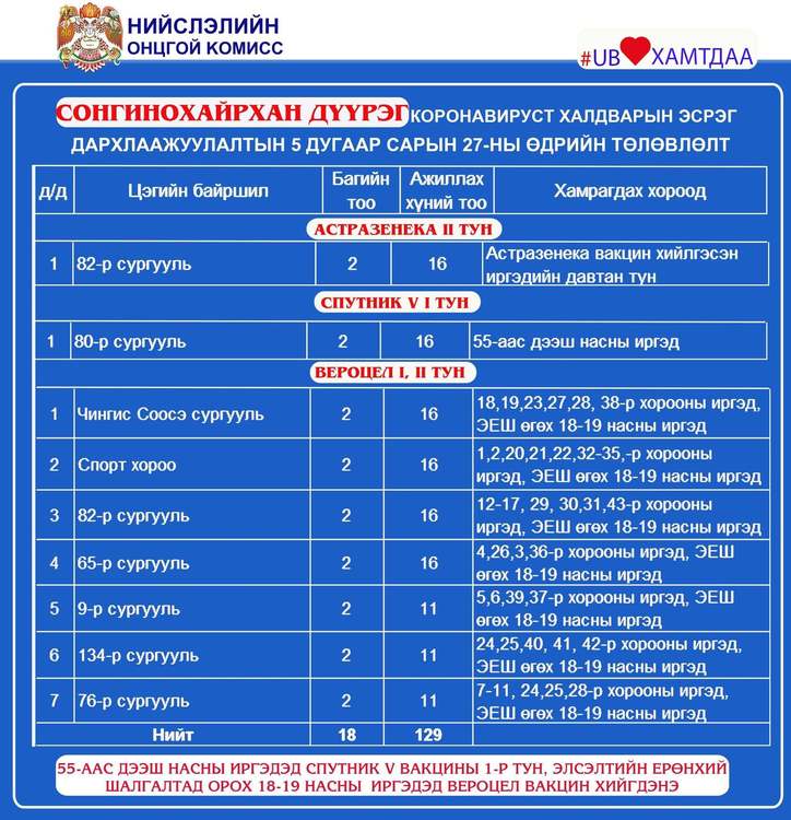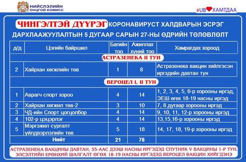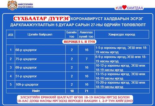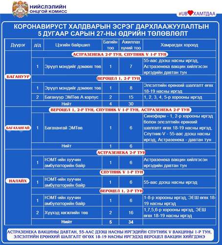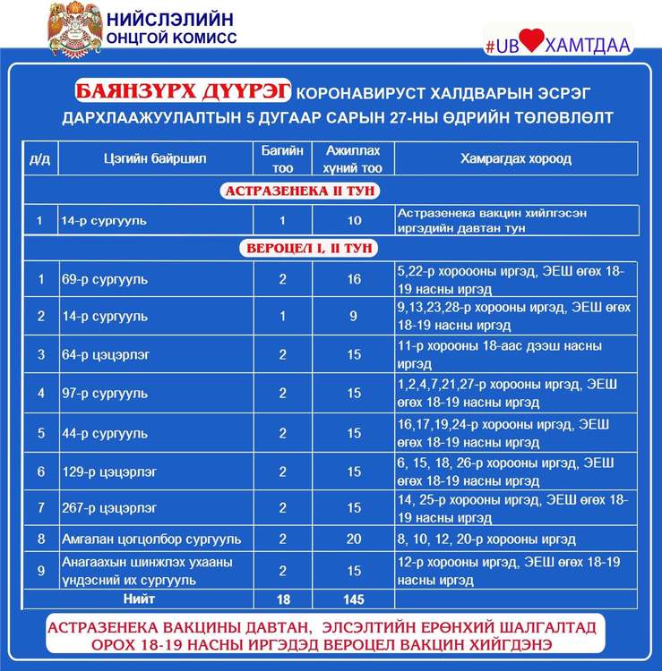 Өнөөдөр ажиллах дархлаажуулалтын цэгүүдийг танилцуулж байна